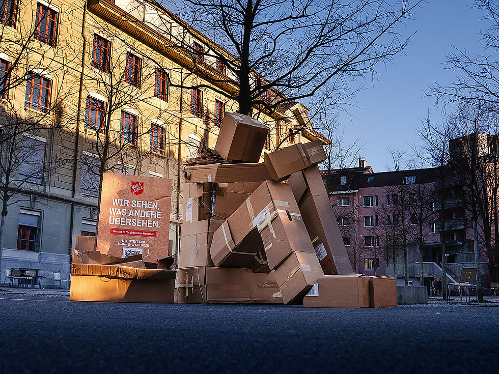 In einer künstlerisch inszenierten Out-of-Home-Aktion auf öffentlichen Plätzen in Zürich und Bern machten die Heilsarmee Schweiz und die Marketing-Agentur thjnk gemeinsam auf die Problematik obdachloser Menschen in der Schweiz aufmerksam.